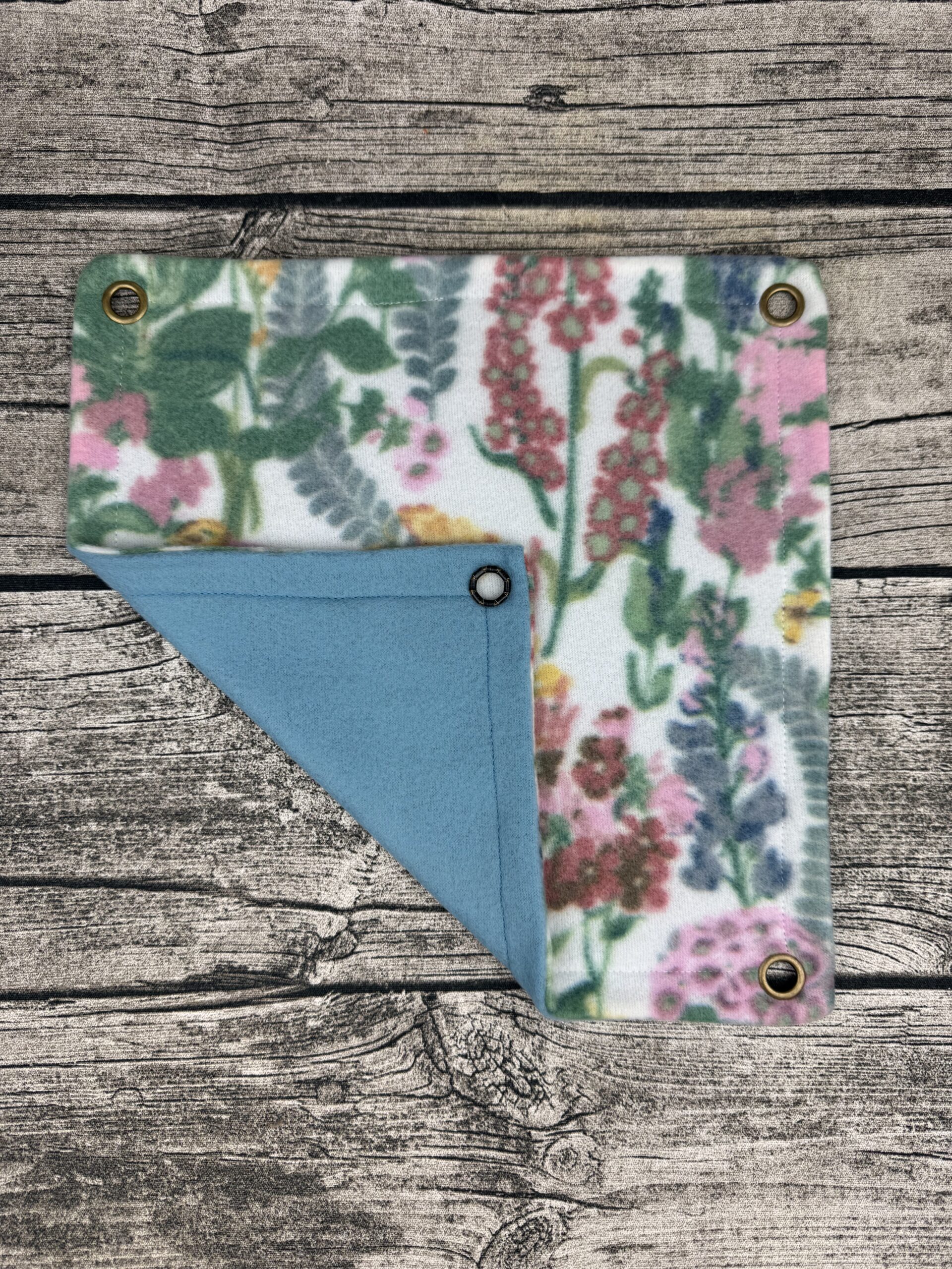 - Enkel hängmatta i ljus blå och blommig fleece.